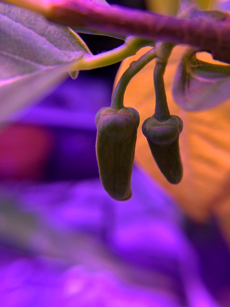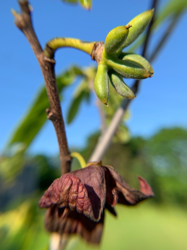 Paw Flower I hand-pollinated with pa paintbrush and added a dead herring under so fly’s would pollinate. Beas do not pollinate paw paw. Fly’s do so in the south some folks use roadkill underneath…