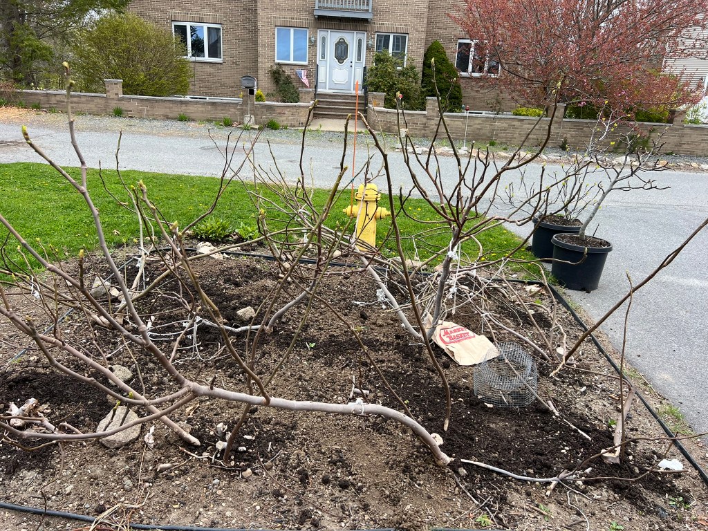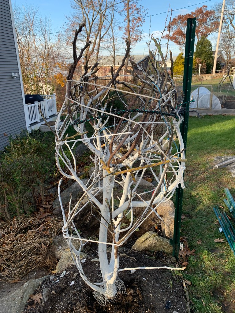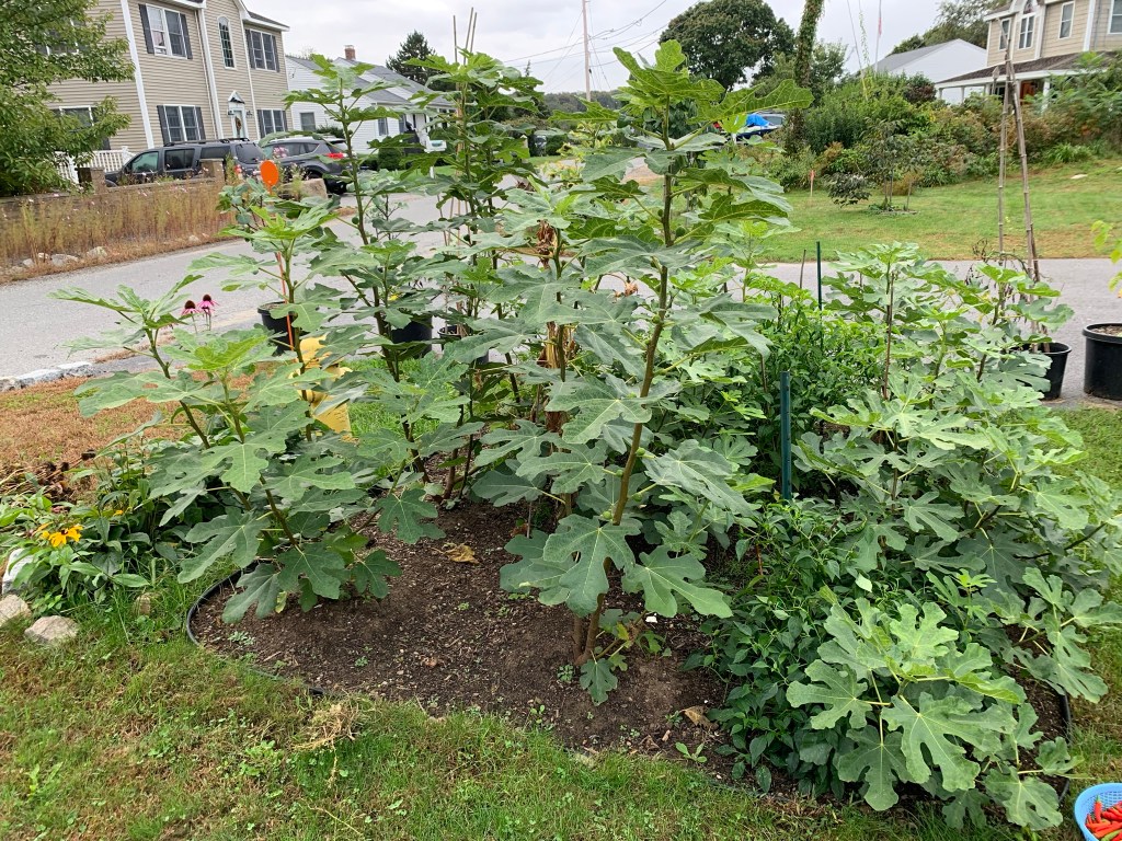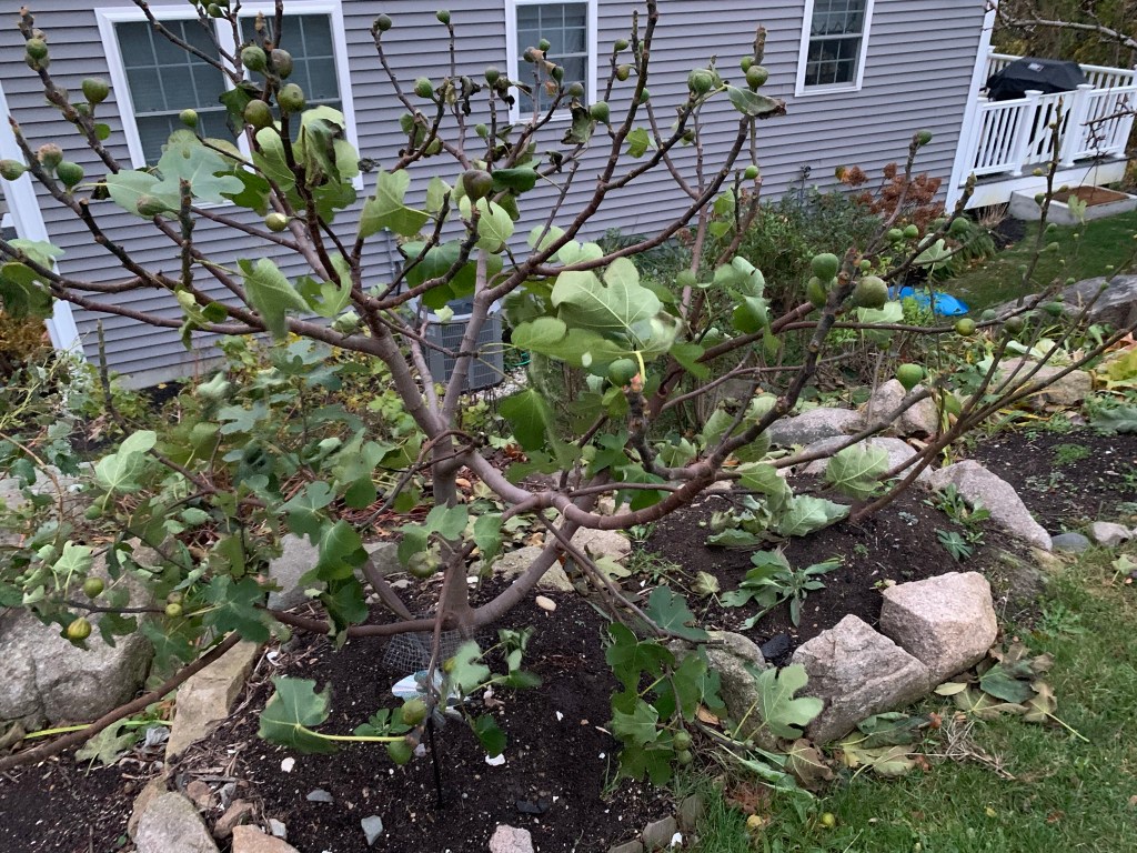 12 closely planted figs that I bent down and covered with leaves and a tarp for the winter. Voles at the bark so, many of them may die…Normally, we get a couple hundred figs.